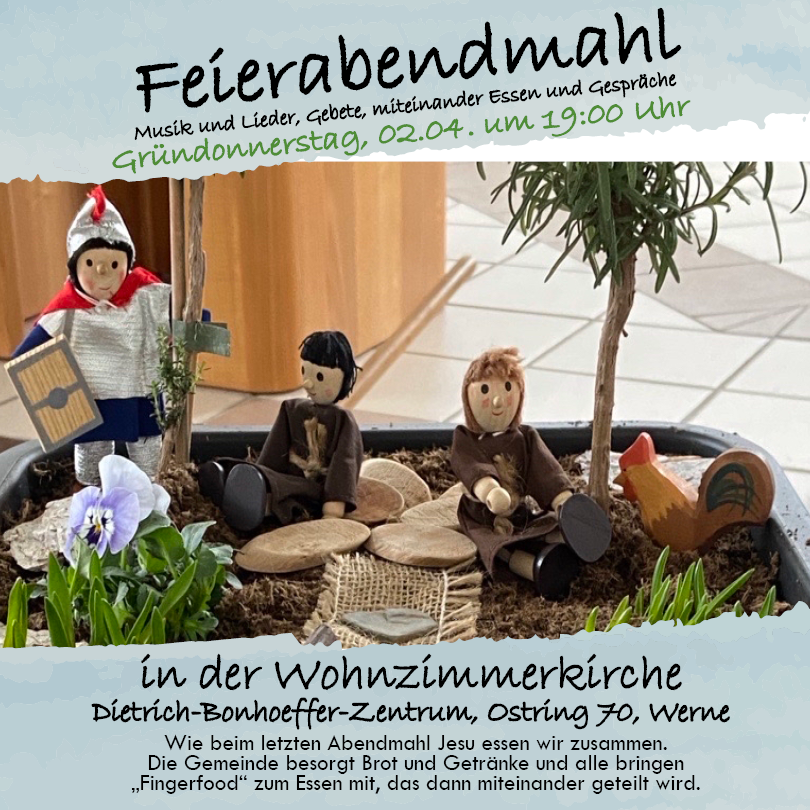 Feierabendmahl am Gründonnerstag 02.04. um 19 Uhr in der Wohnzimmerkirche
